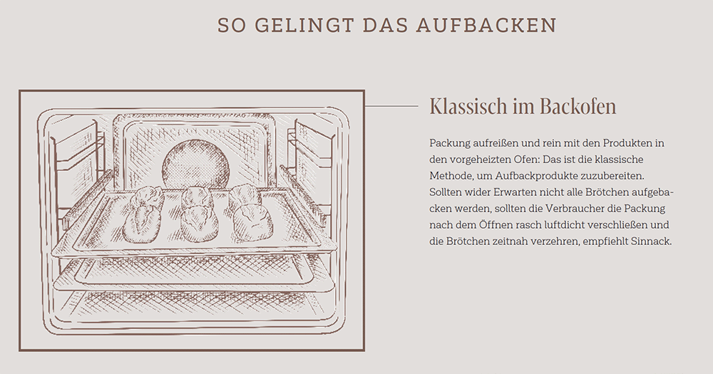 Bis hierhin hat sich der Backprozess nicht groß unterschieden von dem für Schnitt- oder Toastbrote. Die Aufbackprodukte werden nun jedoch nur vorgebacken – ob sie goldbraun oder lieber etwas heller oder dunkler ausgebacken werden, das entscheidet der Endverbraucher daheim in seiner Küche.