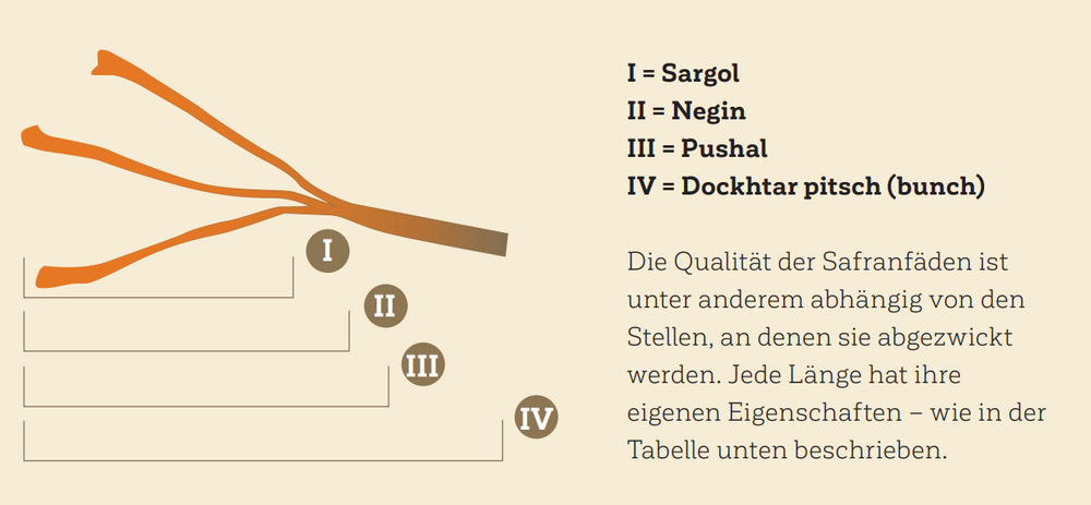 Safran (Crocus sativus) ist ein ausdauerndes Zwiebelgewächs aus der Familie der Schwertliliengewächse. Zwischen Oktober und November bringt jede Zwiebel eine bis drei Blüten hervor, die eine röhrenförmige Form ausbilden, bevor sie sich zu einem lila-violetten Kegel öffnen. Die Blüte enthält drei gelbe Staubblätter und einen hellgelben Griffel, der sich in drei orangerote Narben teilt. Nur diese Narben enthalten die aromagebenden Inhaltsstoffe und werden als Gewürz verwendet. Eine Messerspitze des Pulvers oder wenige Fäden reichen in vielen Rezepten aus, um ein Gericht für vier Personen zu würzen. Eine zu große Menge lässt ein Gericht bitter werden. Der hohe Preis lockt auch schwarze Schafe an. Sie verkaufen Chilifäden als Safran-Fälschungen oder strecken Safranpulver mit Kurkuma. Seriöse Gewürzhersteller sichern die Qualität der Rohware und gewährleisten die Authentizität ihrer Rohware durch Herkunftsnachweise, Laboranalysen und eine sorgfältige Lieferkettenkontrolle. Unter idealen Lagerbedingungen (dunkel, trocken und kühl) ist eine lange Haltbarkeit ohne nennenswerten Aromaverlust möglich.
