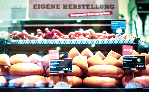 Um die Nachfrage nach den Produkten anzukurbeln, setzt das Center vor allem auf Verkostungen. Auch Kundenevents zum Thema Eigenproduktion bringen in Zukunft die Produkte den Kunden nah. „Transparenz ist das A und O, um das Vertrauen der Kunden zu gewinnen“, betont Göttmann. Ein Video veranschaulicht am PoS, wie die Wurstproduktion im rückwärtigen Bereich abläuft. Zudem bietet das Rewe-Center vier Mal pro Monat Führungen durch die Metzgerei an und informiert über die komplette Eigenproduktion.